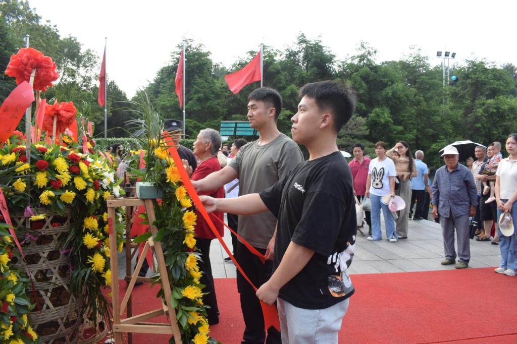 最后,同志们前往铜像广场,向毛主席敬献花篮并在高大的毛泽东同志铜像前三鞠躬,表达对中国人民伟大领袖的崇敬和追思。追思结束后,面对着鲜红的党旗,支部党员同志们举起右手紧握拳头,热情饱满地重温入党誓词,坚定入党初心,承诺永葆党员本色。随后缓步环绕铜像一周,感受主席在那个时代带来的沧桑巨变,感受幸福生活的来之不易。