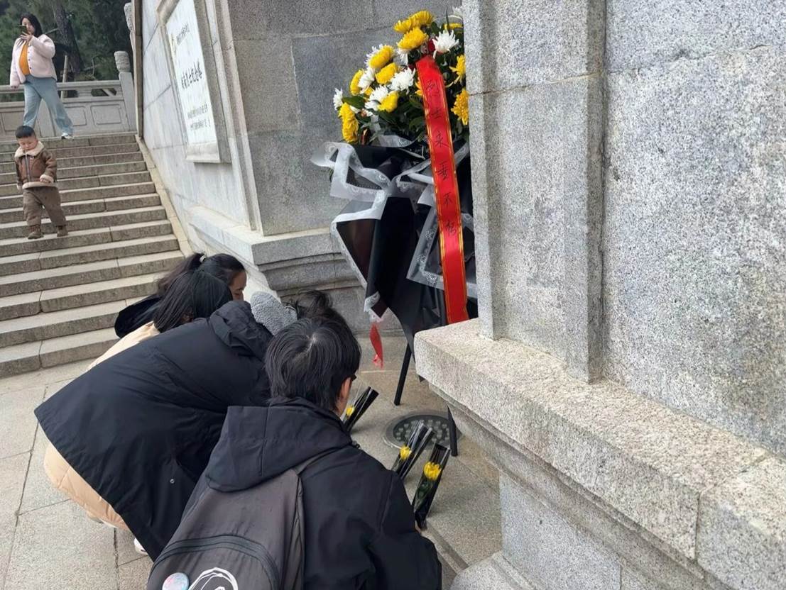 到达烈士公园后,站在烈士纪念碑前,全体同学肃立默哀,表达对革命先烈的深切缅怀与崇高敬意。默哀结束后,同学们依次上前献花,并绕纪念碑一周瞻仰碑文,感受历史的厚重与烈士英魂的无声感召。