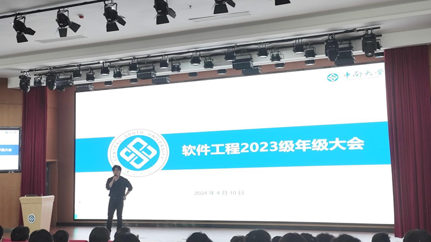 2024年4月10日晚,2023级软件工程年级大会在信息楼108报告厅顺利召开。软件工程系主任邝砾老师、软件工程系副教授费洪晓老师、2023级辅导员袁熠老师、学院学科竞赛专干迟旭老师出席,软件工程专业2023级全体员工参与会议。由袁熠老师主持会场。