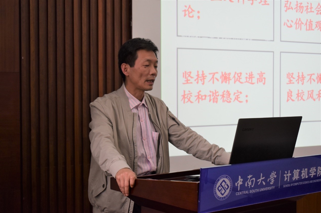 接着,谢怀平老师首先对大家提出了作为员工干部的基本要求:成绩优秀、工作勤勉、乐于奉献是作为一名员工干部的基本要求。谈到实干,谢老师强调了作为员工干部的工作要点,只有做到“三多五有,八大要点”:多沟通、多记录、多思考,有热心、有恒心、有信心、有包容心、有平常心,才能真正把员工工作做好,为学院的工作贡献出自己的一份力量。他希望员工干部能够在执行员工工作的过程中敢于攻坚、敢于挑战,在员工工作中有所学、有所为。