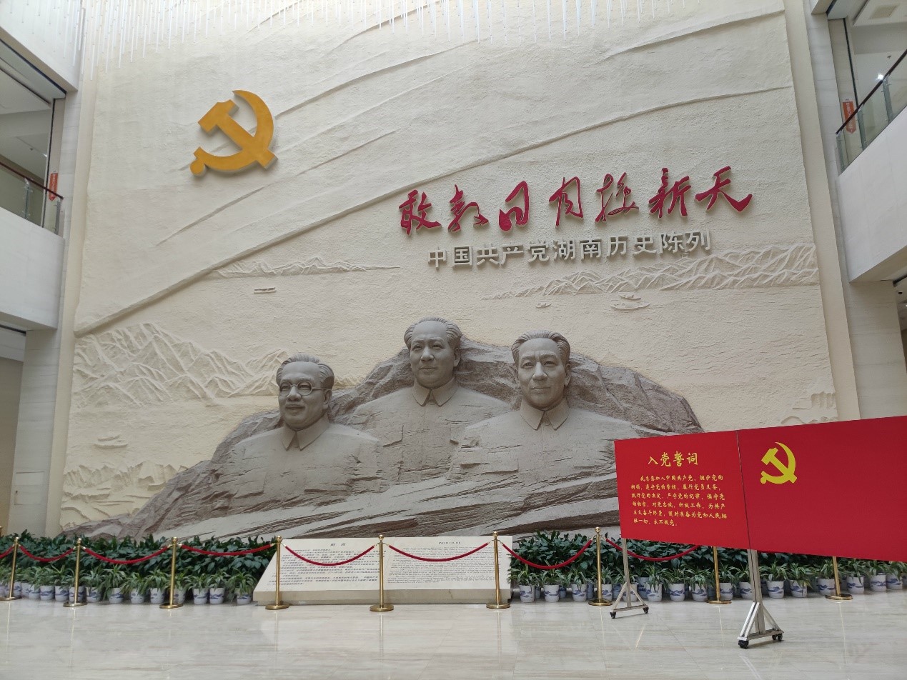 湖南党史陈列馆作为一座大型省级综合性展览馆,很好的保存和发扬了湖南的光荣党史,陈列馆以“敢教日月换新天”为主题,重点展示了中共湖南地方组织的发展历程和湖南党史军史人物的光辉业绩,展现了党在湖南领导人民进行革命、建设和改革所取得的辉煌成就和宝贵经验。陈展按照历史发展脉络分为三个展厅,分别以“开辟新天地”、“描绘新画卷”、“谱写新篇章”为题,展示新民主主义革命、全面建设社会主义、改革开放三个历史时期。伴随讲解员声情并茂的讲解,湖南党史的脉络与细节清晰而生动地展现在员工们的面前,同学们深深为老革命家“苟利国家生死以,岂因祸福避趋之”的革命精神所震撼,为陈列文物背后的动人故事所打动。